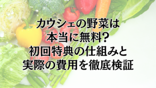 まず結論|カウシェの野菜は本当に無料?カウシェの野菜は「完全に0円」というわけではありませんが、条件をしっかり満たすことで“実質無料”に近い形で利用できるケースがあります。例えば、クーポンやキャンペーンを上手に活用すると、商品代がほぼ0円に...